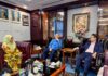 沙巴文具书业公会陈伟裕会长亲临广州文化用品交易会,给于向来彼此关系友好亲切的亚太文具协会联盟总会兼广州文具行业协会倪益松会长最大的支持与配合鼓励。