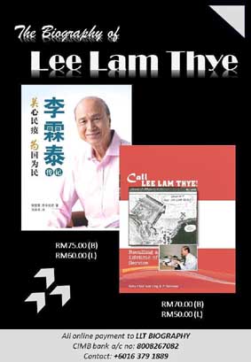 丹斯里李林泰的传记《回顾一生的服务》精装版售价 RM70,平装版售价 RM50。