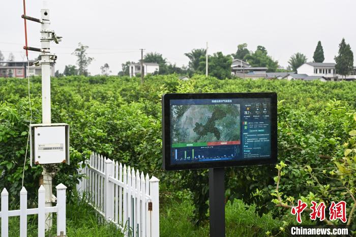 7月8日,重庆潼南,精细化数字气象服务“守护”柏梓镇小岭村柠檬基地。当日,“行走中国·2024海外华文媒体川渝行”参访团一行走进重庆市潼南区,实地了解当地柠檬产业发展。据悉,重庆潼南是世界三大柠檬产地之一,柠檬种植面积达32万亩,柠檬鲜果及柠檬产品远销俄罗斯、新加坡、东南亚等30多个国家和地区。近年来,“潼南柠檬”从技术研发、种苗培育、标准化种植、精深加工等为一体的柠檬全产业链在当地日臻完善。中新社记者 何蓬磊 摄