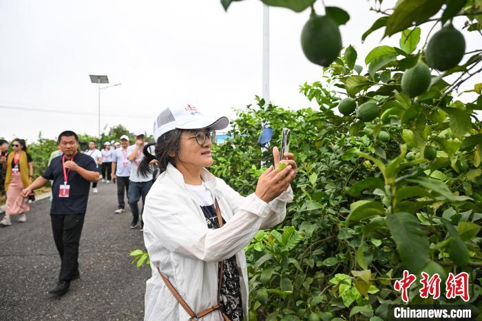 7月8日,海外华文媒体代表在重庆潼南柏梓镇小岭村柠檬基地参观。当日,“行走中国·2024海外华文媒体川渝行”参访团一行走进重庆市潼南区,实地了解当地柠檬产业发展。据悉,重庆潼南是世界三大柠檬产地之一,柠檬种植面积达32万亩,柠檬鲜果及柠檬产品远销俄罗斯、新加坡、东南亚等30多个国家和地区。近年来,“潼南柠檬”从技术研发、种苗培育、标准化种植、精深加工等为一体的柠檬全产业链在当地日臻完善。中新社记者 何蓬磊 摄