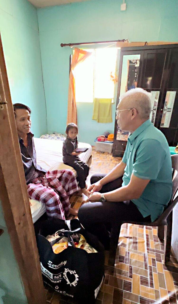 (山打根七日讯)里巴兰国会议员拿督苏海米除了在政坛上活跃外,近日展开亲民关爱探访行动,前往甘榜丹杜力,探望患病居民,给予关怀与援助。