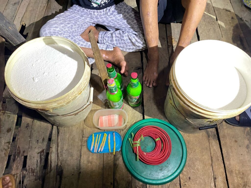 The operation led to the discovery of equipment used for making fish bombs, including seven units of non-electrical detonators, two rolls of red fuse cords, two white 18-litre containers of fertilizer and three glass bottles containing processed fertilizer, he said.