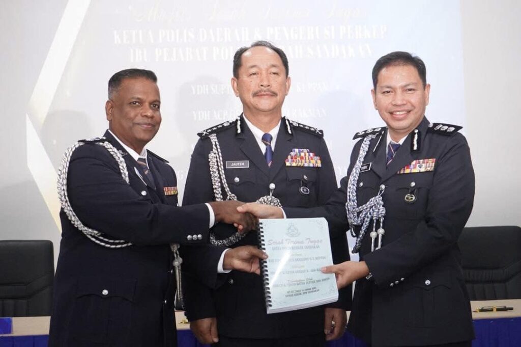 Presiding over the proceedings, Sabah Police Commissioner Datuk Jauteh Dikun oversaw the transition that saw Superintendent Ramasamay Kuppan conclude his tenure as Acting OCPD. This leadership change follows the recent promotion of former chief SAC Ahsmon Bajah to head the Contingent Management Department at Sabah Police Headquarters.
