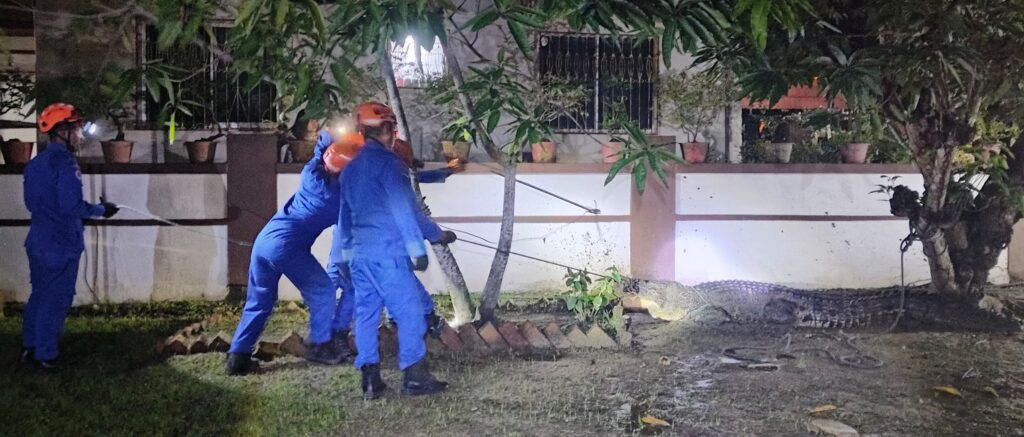 “Pemanggil yang ketakutan melihat buaya berkenaan menghampiri kawasan perumahan lalu segera menghubungi talian kecemasan NG999 bagi mendapatkan bantuan,” katanya.