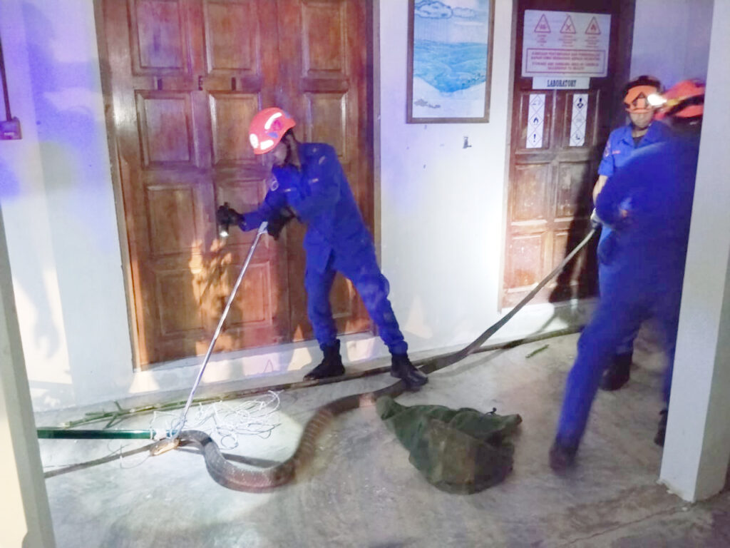 A king cobra measuring approximately 4.5 metres in length and weighing nearly 10 kilogrammes was captured by the APM team using specialised equipment and wearing complete Personal Protective Equipment (PPE).
