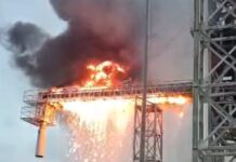 (山打根二十三日訊)开斋节首日下午,烏鲁西埔架路,京那巴鲁棕油厂通碼头的輸送带机器,突然起火焚烧,导致估計約800呎的输送系统燒燬,所幸事故无人员伤亡。